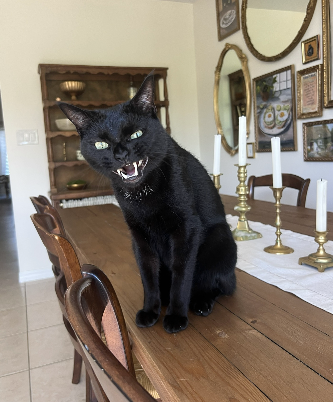 The actual true overlord of the shop. Alternate aliases include Bing Bing, Muzan Kibutsuji, stink stank, skinny minny, ling ding and Mr. Kitty. He is a bit sassy. If you see him, pet at your own risk!